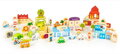 Jednotlivé kocky sú opatrené obrázky postáv, budov a zvieratiek. Stavaním sa dieťa naučí logickému mysleniu, koordináciu a kreativite.