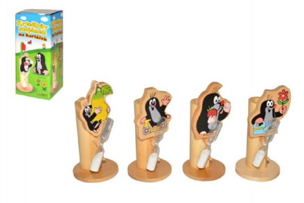 drevený stojan na kefku s presýpacími hodinami v dizajne Krtko
